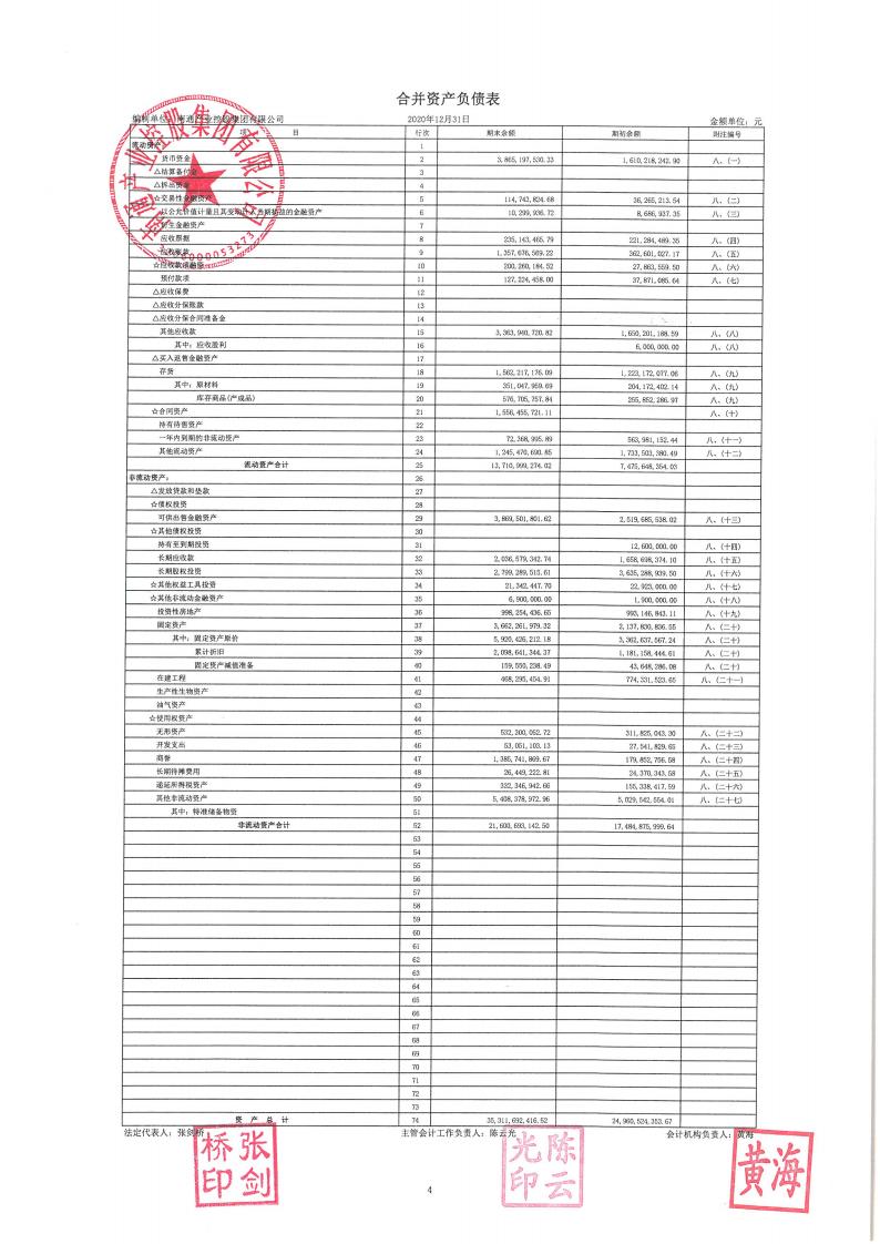 产控集团2020年财务报表