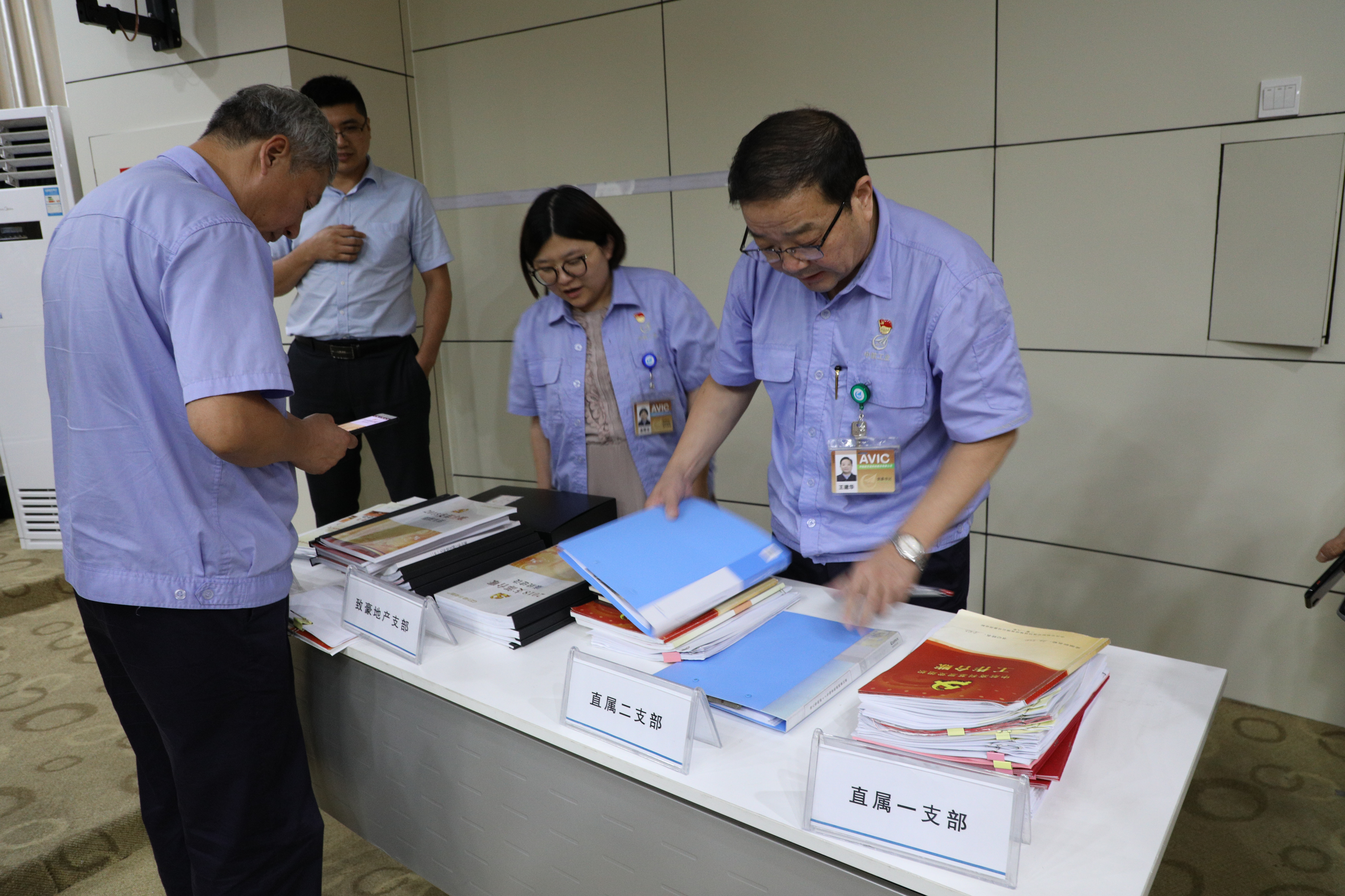 会议现场,各单位展示了各自的党建工作台账,供大家交流学习。