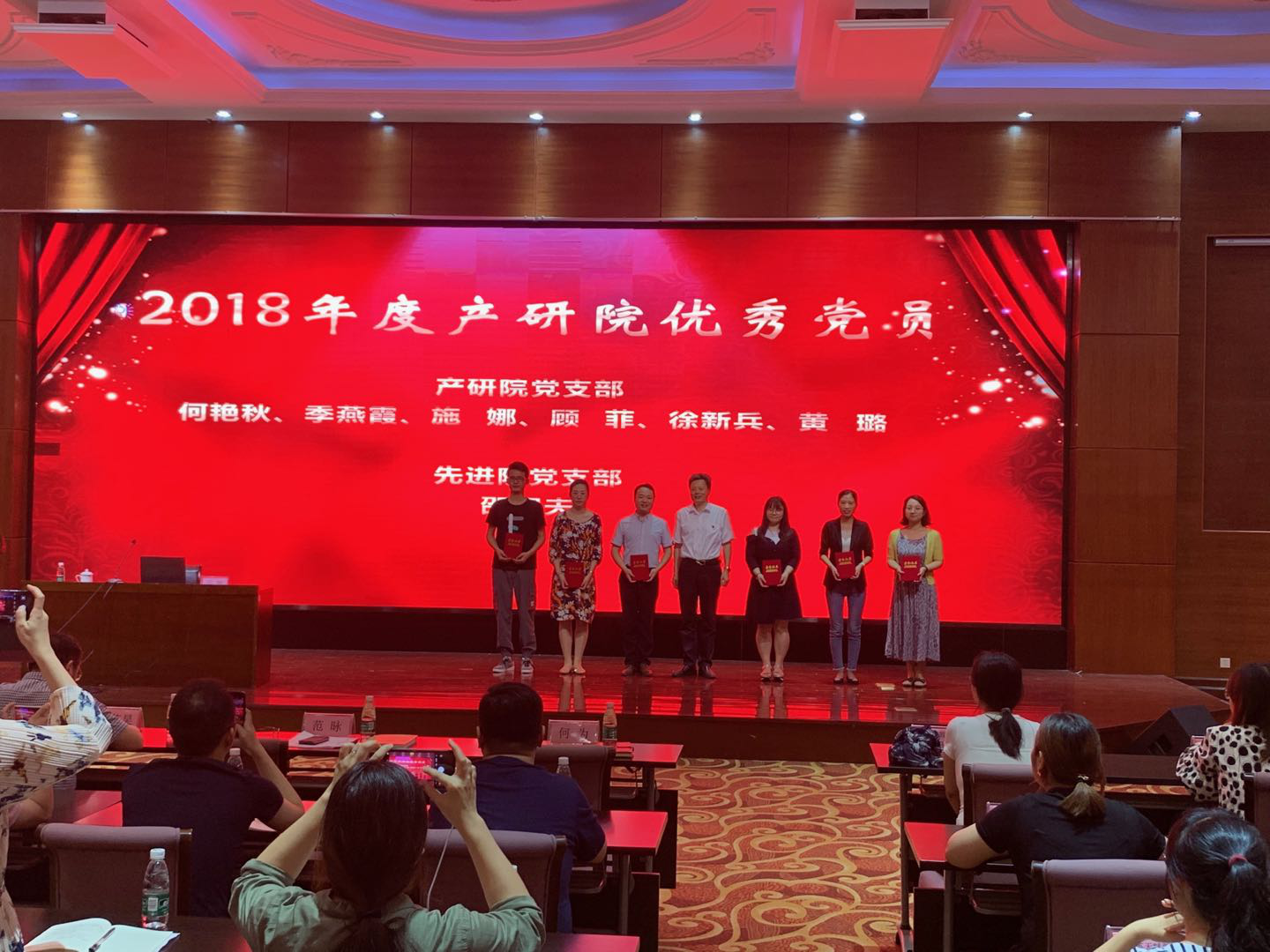 产研院对在工作中表现优秀、成绩突出的7名党员授予“优秀共产党员”称号,对园区企业在创新创业、经营管理、社会服务等方面党员双创典型--南通林格自动化、江苏紫霞生物、南通爱比邻信息科技、江苏天赋新能源等11家企业授予“党员创业示范企业”称号。产研院党委书记、总经理范昹同志为他们颁发荣誉证书和奖牌,希望他们再接再厉,进一步坚定推进创业的信心,努力干出水平、干出特色,力争取得更大的经济和社会效益;希望全院上下、园区企业向先进学习,学习宣传双创先进理念、先进经验,影响和带动更多园区企业又好、又快发展。