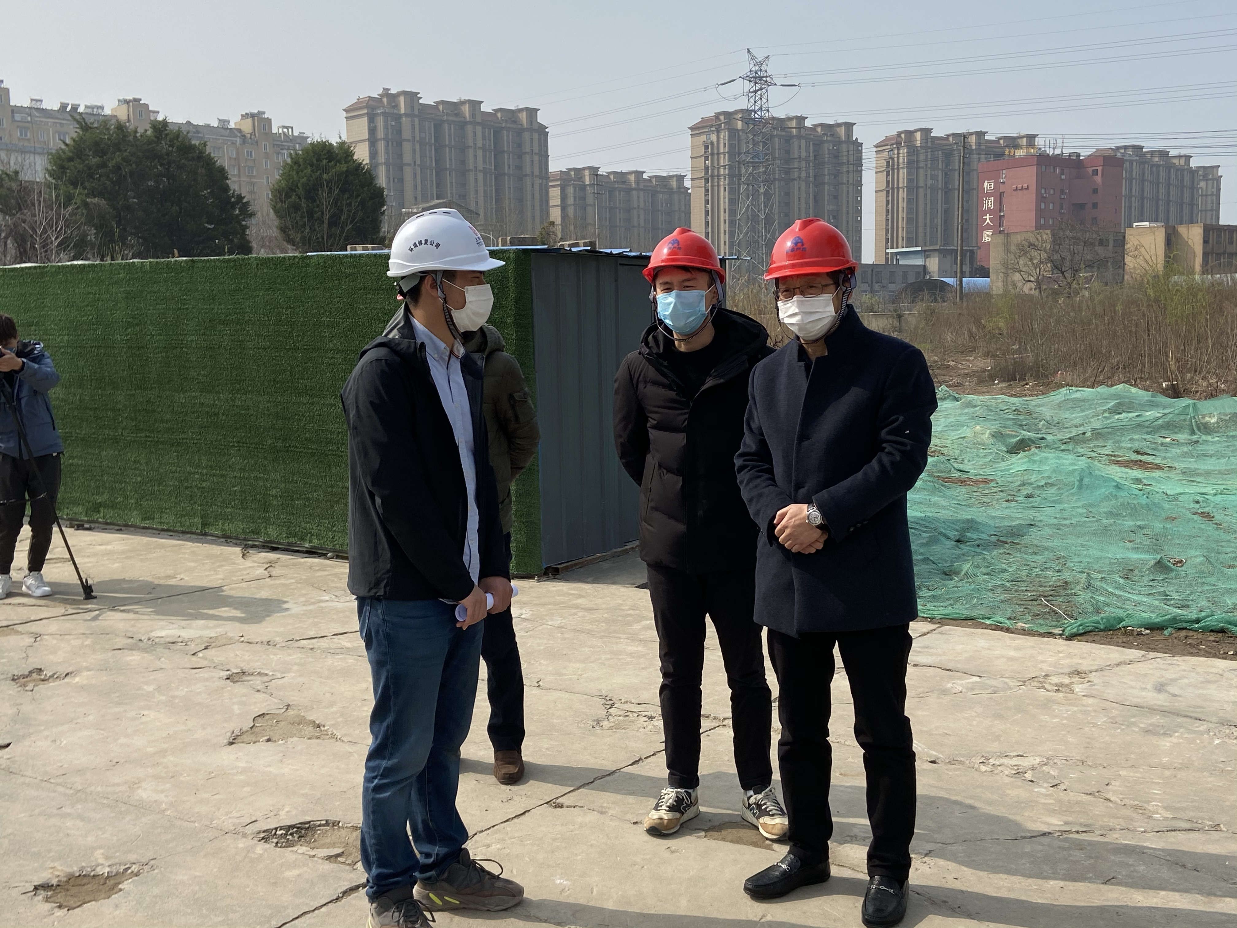 3月11日上午,AK平台党委委员、副总经理沈百安带队现场检查原万达锅炉(北)地块土壤修复工地复工情况并检查工地疫情防控相关工作。