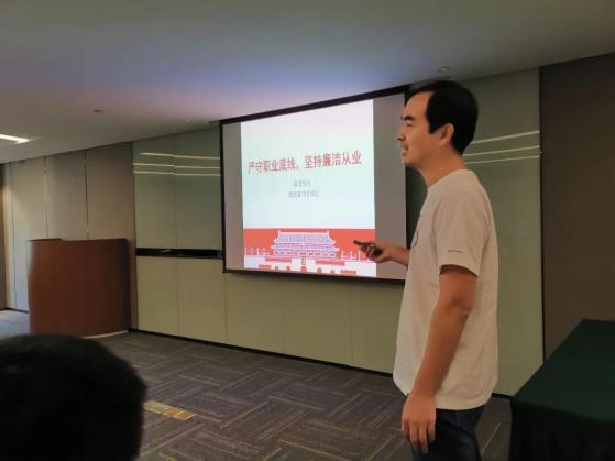 10月10日-11日,公司邀请人力资源管理专家,给制剂销售团队进行了人力资源管理培训。 10月12日-13日,南沈科技党支部书记韩曙东上了一堂以《严守职业底线,坚持廉洁从业》为主题的廉政课。 南沈科技综合管理部专门介绍了商务流程,从流程、节点、成本和过程控制等方面全方位介绍中台工作。同时,现场进行交流互动,对中台工作答疑解惑,让大家进一步了解该怎么做和为什么要这么做。 会上,制剂销售人员各自进行了工作汇报和2021年的工作打算。 公司常务副总经理王利兼南沈科技总经理摁响了制剂销售的启动键,并在会上作重要发言,部署了未来制剂规划,勉励大家敢立潮头、乘风破浪。