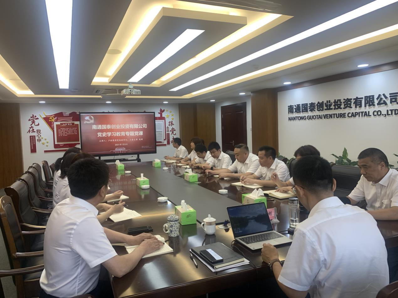 成刚带领国泰党员干部传达学习了市委副书记、市长王晖在全市国资系统党员领导干部上的《赓续共产党人精神血脉 加强国有企业党的建设》党史学习教育专题党课,重点围绕“深入学习百年党史,感悟真理力量”、“全面传承红色精神,擦亮国有企业改革发展的鲜明底色”、“充分汲取奋进力量,以高质量党建引领国有企业高质量发展”三个方面进行深刻阐述,回顾百年来中国共产党带领人民走过的光辉历程和历史性贡献、国有企业改革发展历程,从红色记忆中汲取前进的智慧和力量,推动国有企业高质量发展。